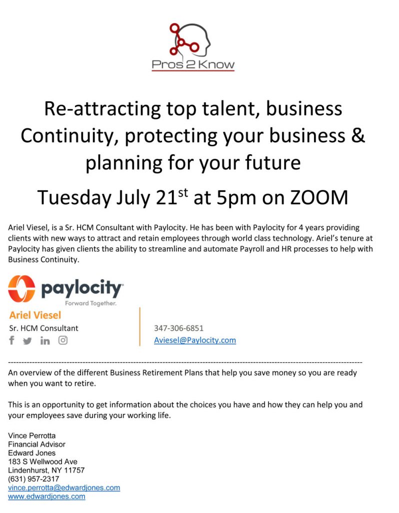 Re-attracting top talent, business Continuity, protecting your business & planning for your future